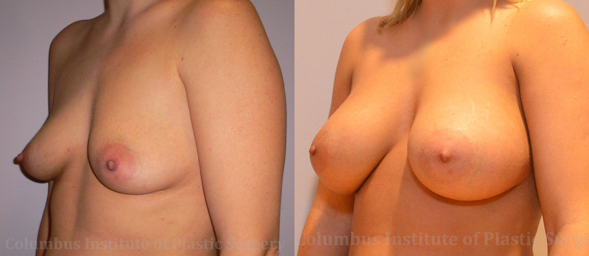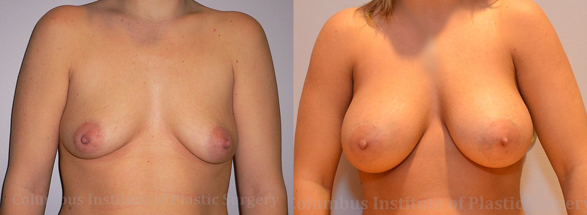This 37-year-old South Vienna, Ohio native knew she wanted breast implants, but was very careful to go about the process cautiously. She did her research, and found board-certified and top-rated breast augmentation surgeon Dr. Bivik Shah, and happily scheduled a consultation. At 5’1”, and 140 lbs, she was careful to choose implants that were just right for her frame. She chose 375 cc silicone high profile implants. She looks beautiful! She is shown here pre-operatively, and 1 year following surgery.