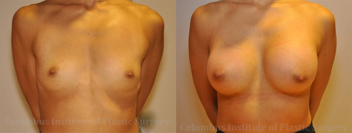 This 26-year-old woman from Fairborn, Ohio came to see our top surgeon Dr. Bivik Shah, MD at the Columbus Institute of Plastic Surgery in search of the top results for breast implants (Breast Augmentation). Following a comprehensive consultation, she decided on 425 cc high profile silicone implants, which Dr. Shah placed sub-muscular, resulting in this elegant result. She is shown here before, and 3 months after breast augmentation.