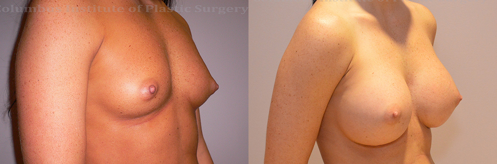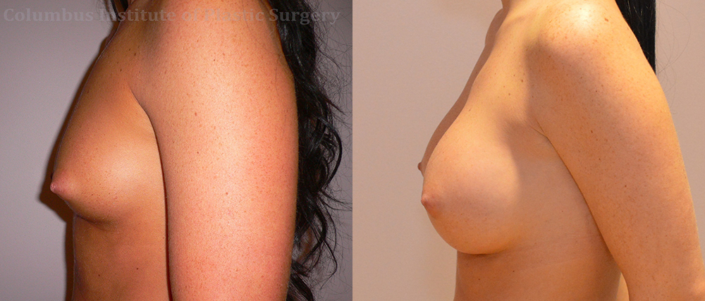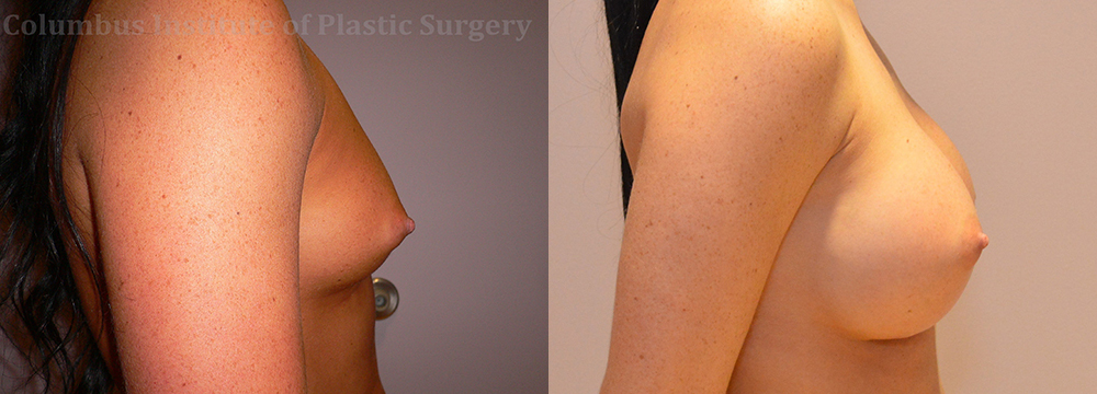 This lovely 23-year-old woman from Kentucky found top rated plastic surgeon Bivik Shah, MD, and made the trip to Columbus Ohio to discuss breast augmentation. Put at ease by his vast experience, she scheduled the surgery she had long been contemplating. She chose 450 cc silicone implants that Dr. Shah placed through her inframammary folds and under her pectoral muscles. She is shown here before breast augmentation and 7 months post-operatively.