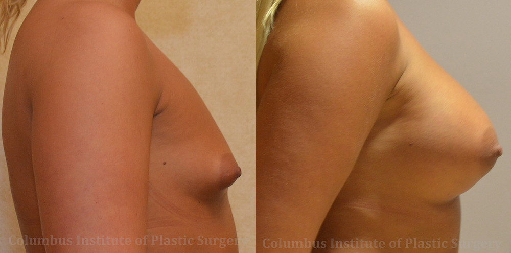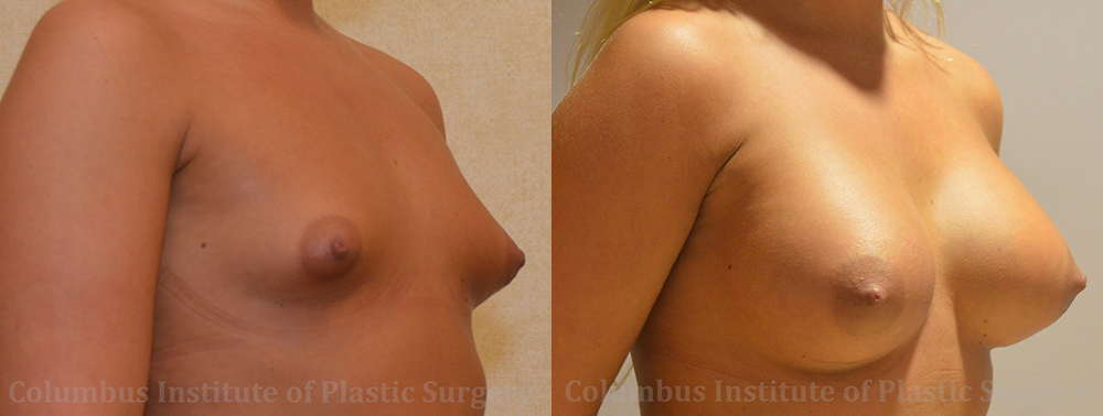 This 25 year old native of Columbus, Ohio desired fuller, natural-looking breasts. Ready to make her dreams a reality, she scheduled a consultation with the best Columbus Plastic Surgeon Dr. Bivik Shah to discuss the best way to achieve her goals. Ultimately, this young lady decided on 590 cc Ultra High profile silicone implants. Dr. Shah placed them through the inframammary folds (under the breast or crease incision), and under the pectoral muscles. She looks fantastic! She is shown here before and 5 months after breast augmentation.