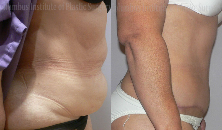 This is a 62 year old woman from Columbus, Ohio who was looking to improve the appearance of her abdomen. She came to The Columbus Institute of Plastic Surgery to have an abdominoplasty (tummy tuck) surgery. Dr. Bivik Shah removed the excess skin and fat from her abdomen and tighten her abdominal muscles. The after photo was taken 1 year after the surgery.