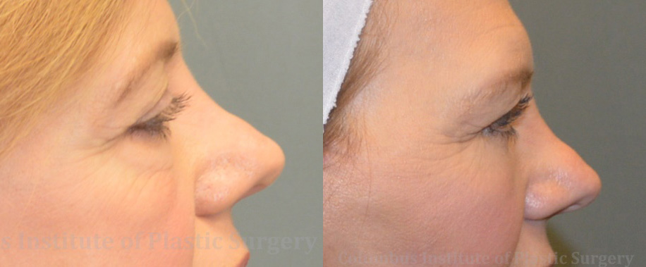 This 58 year old woman from South Shore, Kentucky came to The Columbus Institute of Plastic Surgery for a Lower Blepharoplasty (eyelid surgery). As you can see, she had quite a bit of puffiness and “bags” under the eyes. Feeling like thismade her look tired, she wanted that area to be more smooth and refreshed looking. Dr. Bivik Shah performed the surgery creating an incision under the lower lashes that once healed, is always hard to notice. Within about a year to a year and a half, the scar will look its absolute best. The after photo here was taken 4 months after surgery.