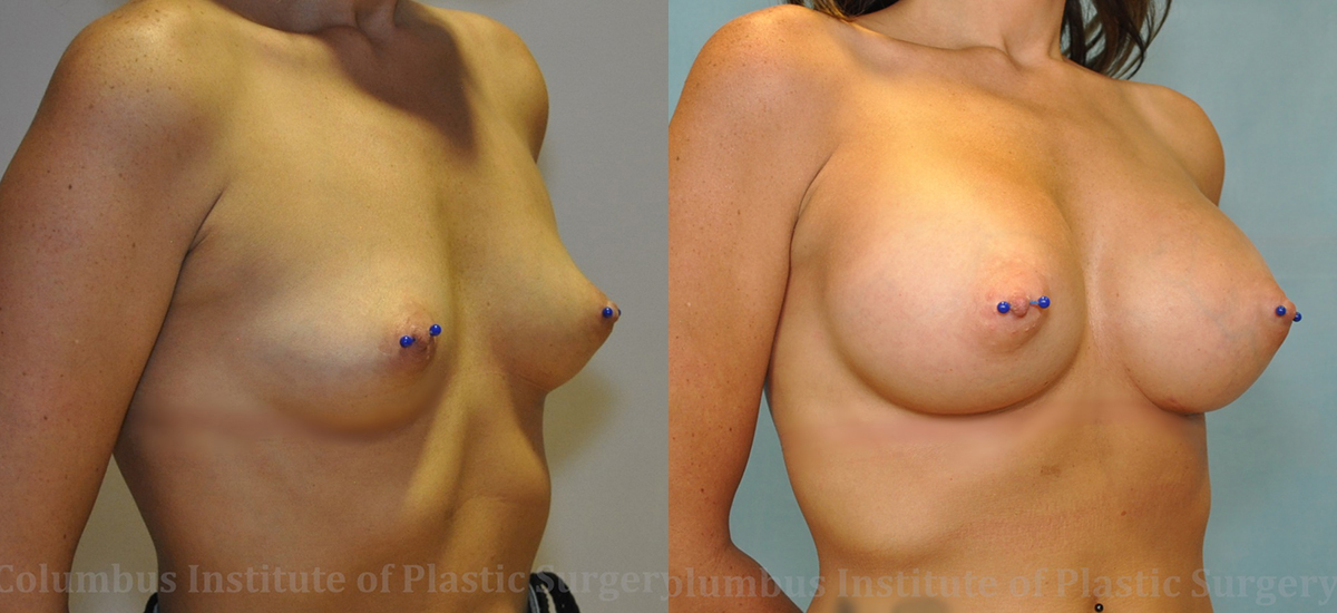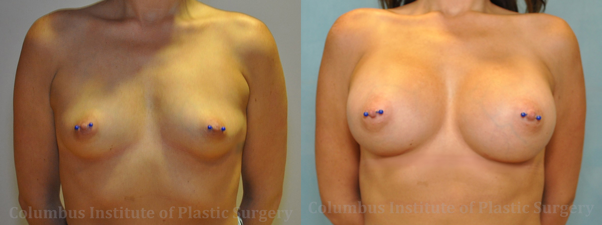 This 34-year-old woman from Zanesville, OH came to meet with top Plastic Surgeon, Dr. Bivik Shah after having done much research. She wanted to enhance the appearance of her breast as she lacked breast tissue and fullness. Together they chose a style implant and size best to get her the look she had wanted. She has 450cc Silicone breast implants. She is pictured here before and 3 months after surgery.