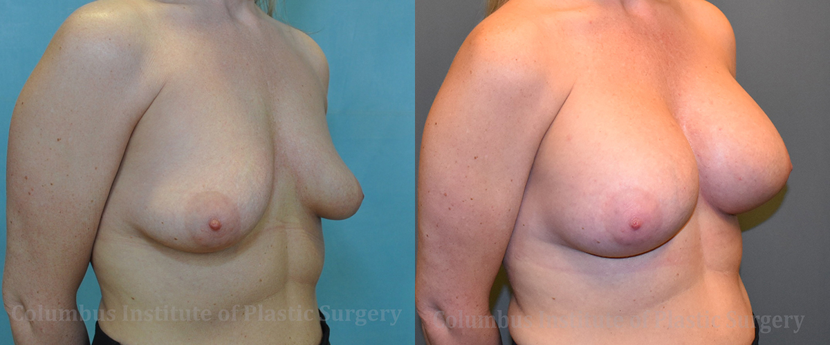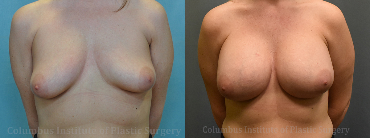 This 35-year-old woman from Ostrander, Ohio was looking for a breast augmentation to achieve the bust size she was desiring. She researched her options, and found top breast implant surgeon, Dr. Bivik Shah, MD right here in Columbus Ohio. She has some breast sag (breast ptosis) and Dr. Bivik Shah discussed a breast lift (Mastopexy) with breast implants or a Breast Augmentation alone. She moved forward with a silicone breast augmentation, with 500 cc silicone implants placed under the pectoral muscles. She is photographed here before and 6 months following surgery.