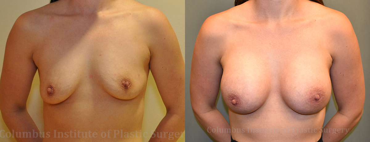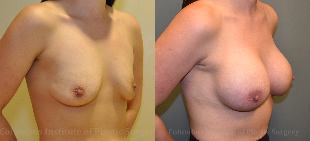 This 33-year-old woman from Sidney, Ohio came to see our top surgeon Dr. Bivik Shah, MD at the Columbus Institute of Plastic Surgery in search of the best results for breast implants (Breast Augmentation). Following a comprehensive consultation, she decided on 400 cc high profile silicone implants, which Dr. Shah placed sub-muscular, resulting in this beautiful result. She is shown here before, and 6 weeks after breast augmentation.