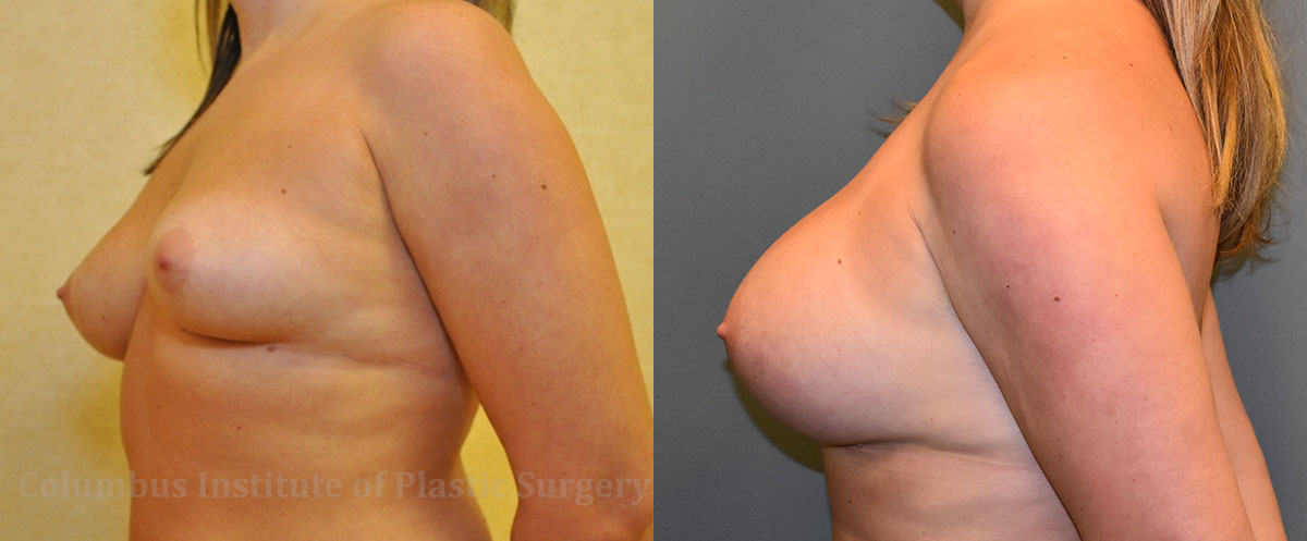 This is a 33-year-old woman from Parkersburg, West Virginia who found top-rated breast augmentation surgeon Dr. Bivik Shah here in Columbus Ohio to discuss breast augmentation. Pleased with his bedside manner and experience, she scheduled right away! She chose 550cc HP silicone implants. Dr. Shah expertly placed them through her breast crease, and under her pectoral muscles. She is pictured here before and 6 months following surgery.