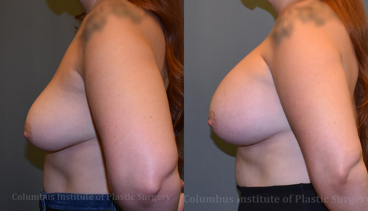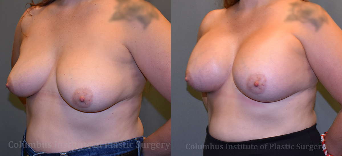 This 36-year-old woman from Columbus, Ohio was looking for the perfect breast augmentation to achieve the bust size she was desiring. She researched her options, and found top-rated breast implant surgeon, Dr. Bivik Shah, MD right here in Columbus Ohio. He advised she had a decent amount of (ptosis) “sag” but she did not want a lift that would leave scars on the front of the breasts. Ultimately she moved forward with 650 cc silicone implants placed under the pectoral muscle. She is photographed here before and 1 month following.