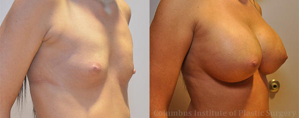 This 30-year-old young woman from Columbus, Ohio was on a mission to fine the best plastic surgeon to perform her breast augmentation. Impressed by his experience and reputation, she found Dr. Bivik Shah at the Columbus Institute of Plastic Surgery. He agreed she was an excellent candidate for breast augmentation, and her surgery was scheduled. With Dr. Shah’s expert approval, she chose 550 cc high profile breast implants. She is wearing her new confidence proudly! She is photographed here before breast augmentation, and 7 months post-op.