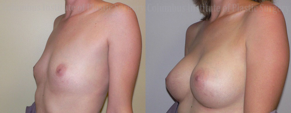 This is a 52 year old woman from Kingston, Ohio. She wanted a breast augmentation at The Columbus Institute of Plastic Surgery. After carefully considering the implant size, she and Dr. Bivik Shah decided upon using a 325 cc implants on both breasts. The after photos were taken 4 months after surgery. Her incision was under the breast, easily hidden, and the implants were placed below the muscle.