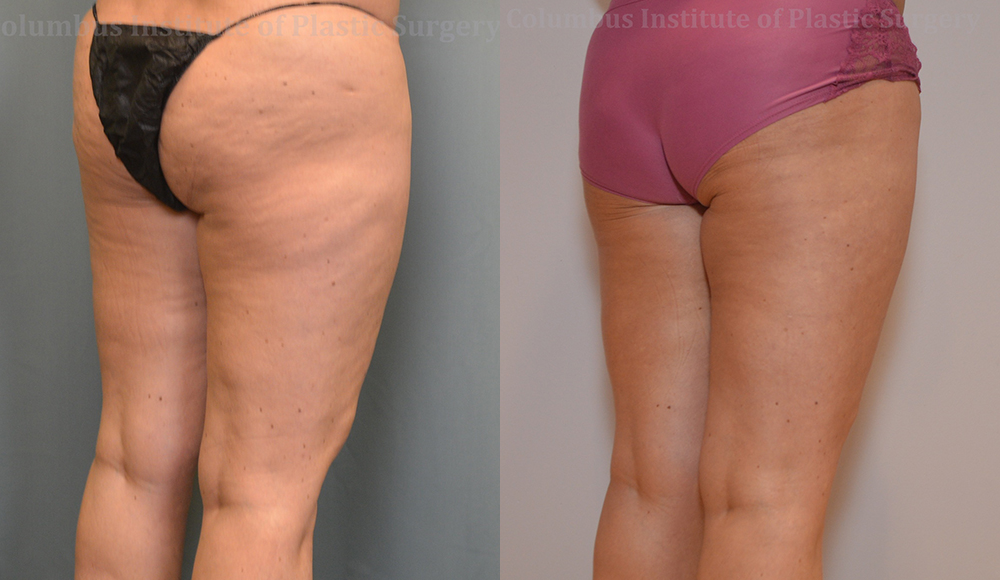 This is a beautiful Ohio resident who was self-conscience of the “dimpling” on her legs. She visited best-in-his-field physician Dr. Bivik Shah and he recommended our Cellusmooth® treatment. This is a minimally invasive laser treatment, that as you can see, offers excellent results! She is photographed here before Cellusmooth® and one year following.