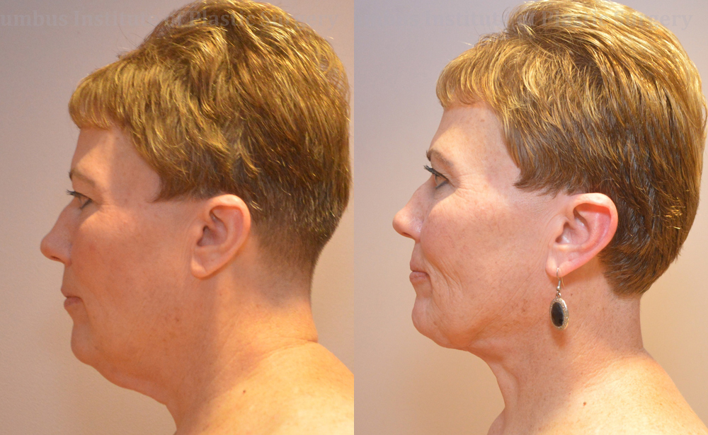 This 58 year old woman from Blacklick, Ohio wanted to finally get rid of her excess submental tissue, or “double chin.” This is an area that is typically futile to diet and exercise, usually the best option is plastic surgery. Dr. Shah did liposuction of the unwanted fat in the chin and neck area. She is photographed here pre-operatively, and 2 months post liposuction.