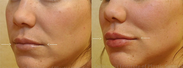 This lovely 34-year-old woman from Columbus, Ohio wanted to plump her lips with a little filler, but was concerned with ending up with a “too-full” appearance she had seen far too often from other Doctors over-filling this area. Top injector Dr. Shah assured her that he would take a conservative and natural approach. He used just one syringe of Restylane between both upper and lower lips, which resulted in a subtle, lovely result. She is shown here immediately before and immediately after injection.