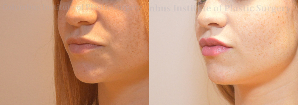This 23 year old woman from Newark, Ohio came to Dr. Shah in search of fuller lips. She desired the current, full, pouty look she sees in magazines, while still maintaining a natural look. Dr. Shah injected one syringe of Juvederm Ultra Plus. She is photographed here before injections, and one month following. Results will last up to one year.