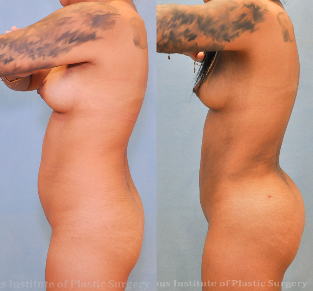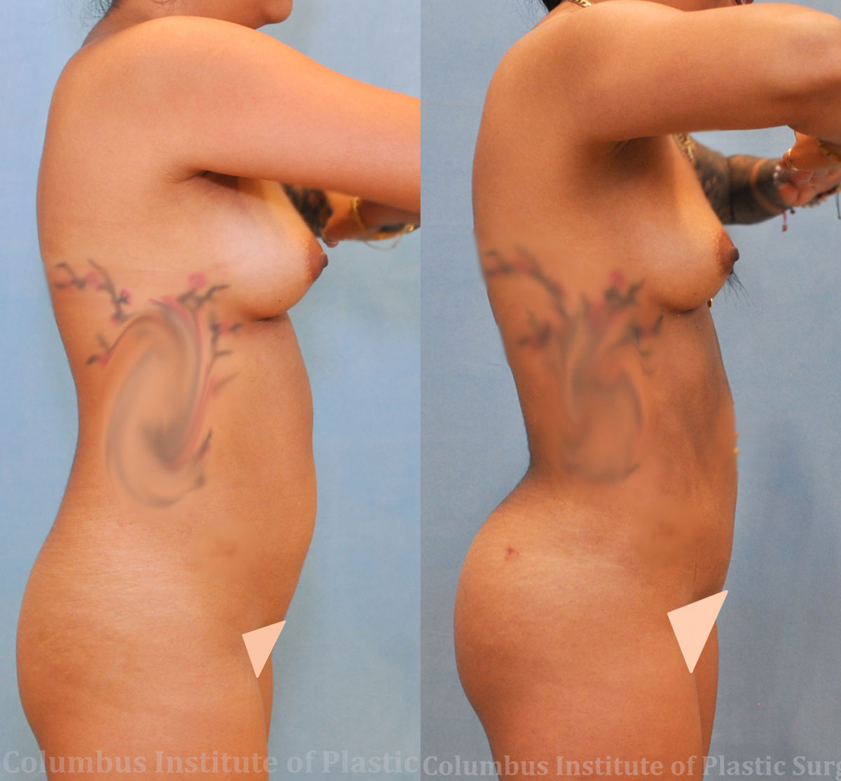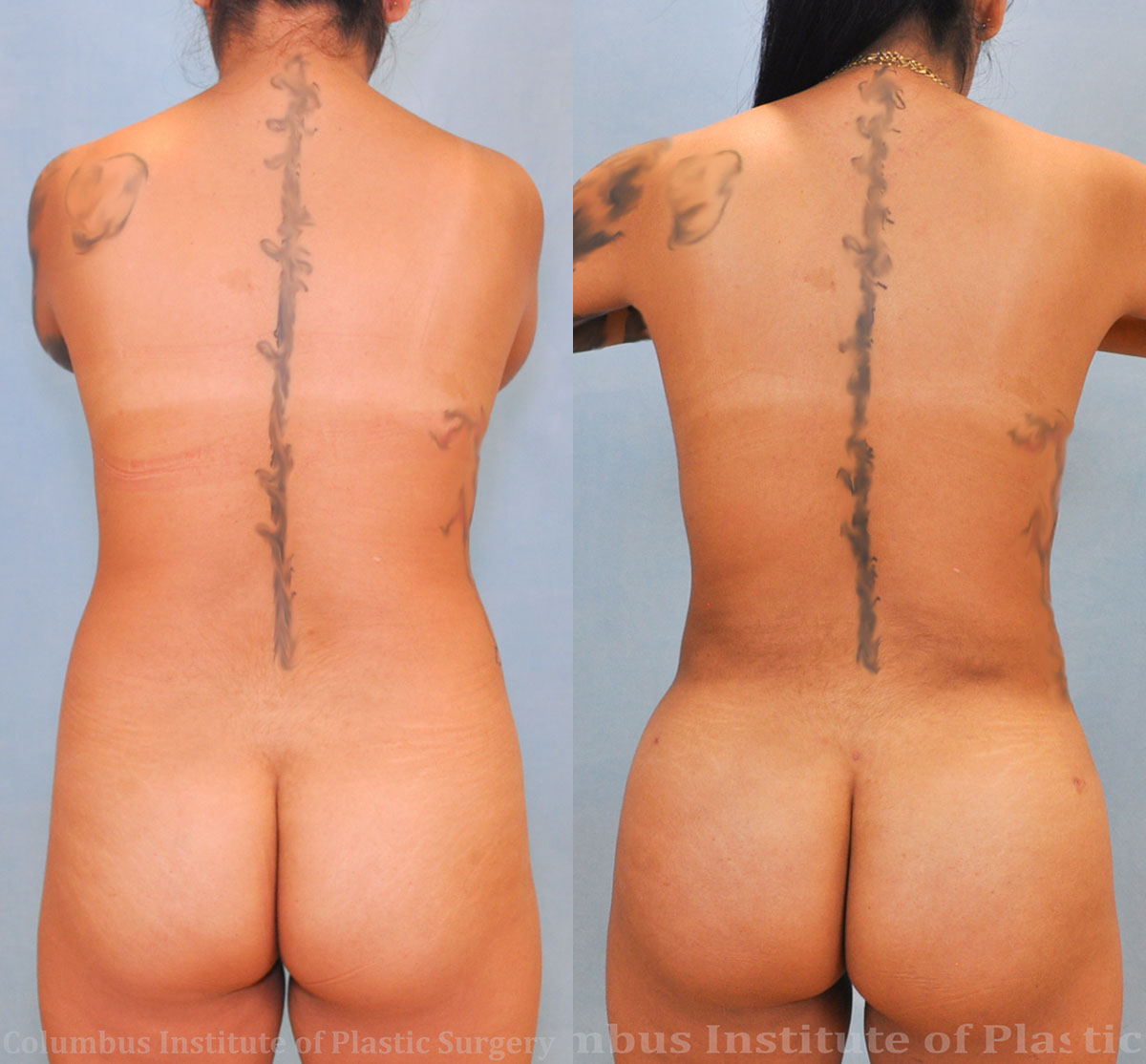This 27 year old woman from Columbus, Ohio came to The Columbus Institute of Plastic Surgery to feel more confident in her body. She met here with plastic surgeon, Dr. Bivik Shah and let him know the look that she was hoping to achieve. He went over some of her options and they decided on Fat Grafting to Buttock and Liposuction, otherwise known as BBL. This would certainly give her the look she wanted. The after photo here was taken 1 month after surgery. Once she is a year and a half out from surgery, her scars and results will look their best!