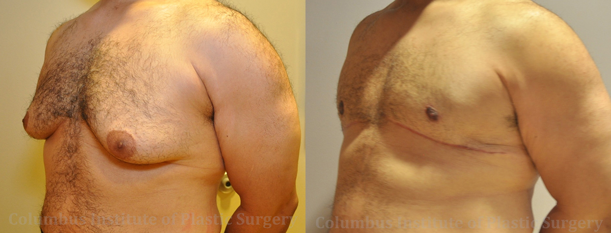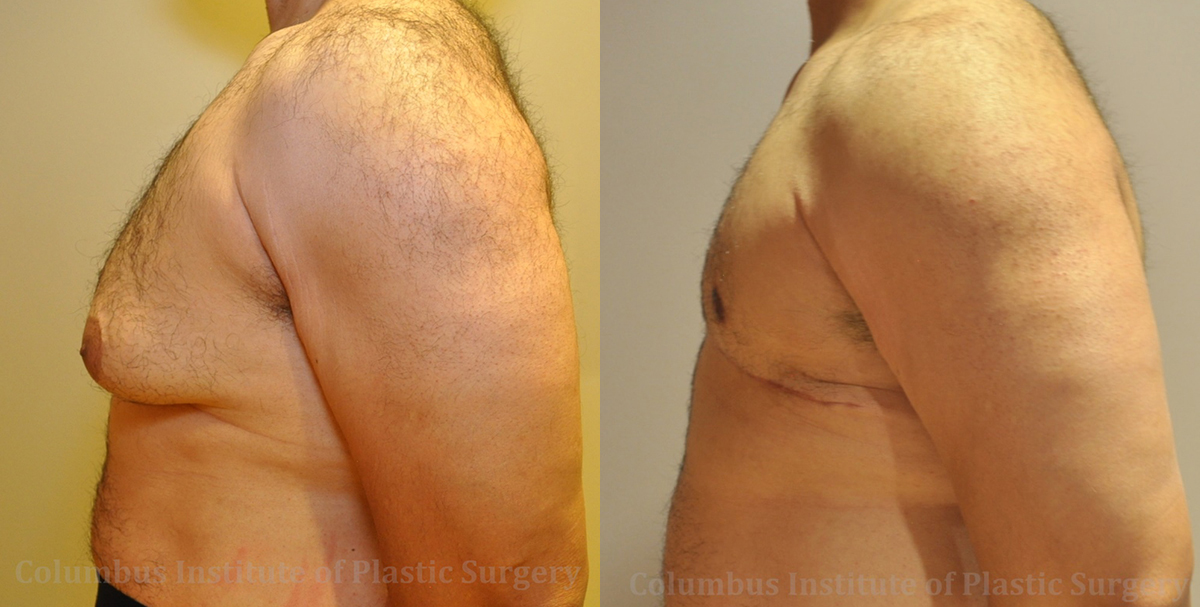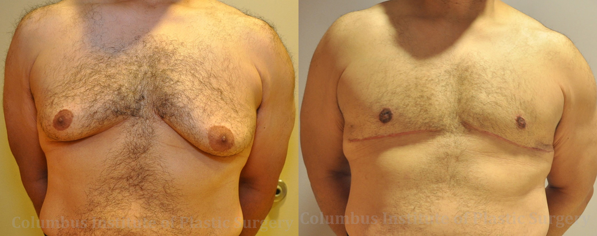 This 55-year-old gentleman from Columbus, Ohio came to discuss the gynecomastia procedure with top surgeon Bivik Shah MD at the Columbus Institute of Plastic Surgery. During his consultation, it was determined that he needed Level III gynecomastia correction, and in order to reach optimal results, he would require skin removal in addition to liposuction. He is photographed here before and 5.2 months post-operatively. The scar will continue to improve over the next 1-2 years.