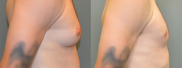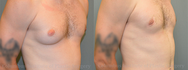 This 23-year-old from West Jefferson, Ohio’s primary objective was to find the top way to address a common male complaint – gynecomastia. He wanted a natural result, where he would get the outcome he wanted, to make both sides symmetrical. He came to the Columbus Institute of Plastic Surgery, where he met with Bivik Shah, MD in consultation. Dr. Shah advised the Level II Gynecomastia procedure under IV sedation for the right breast only. A few weeks later, the surgery was completed! He is shown here pre-op and 1 month post-op.