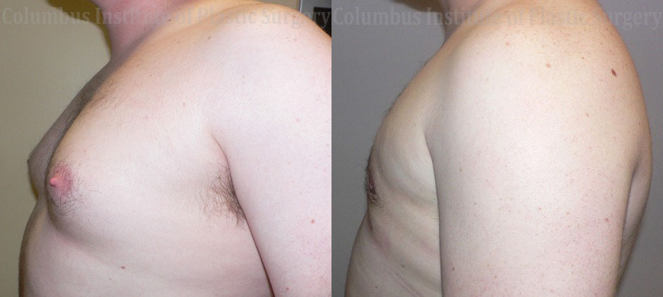 This patient is a 34 year old man from Westerville, Ohio. He was uncomfortable with the excess breast tissue and fat he had in his chest. He came to The Columbus Institute of Plastic Surgery for a Gynecomastia Level I Surgery. Level I means that he had liposuction to the chest and no other incisions were made. This took care of his concerns and he is now much happier with his chest. The after photos were taken 2 weeks after surgery.