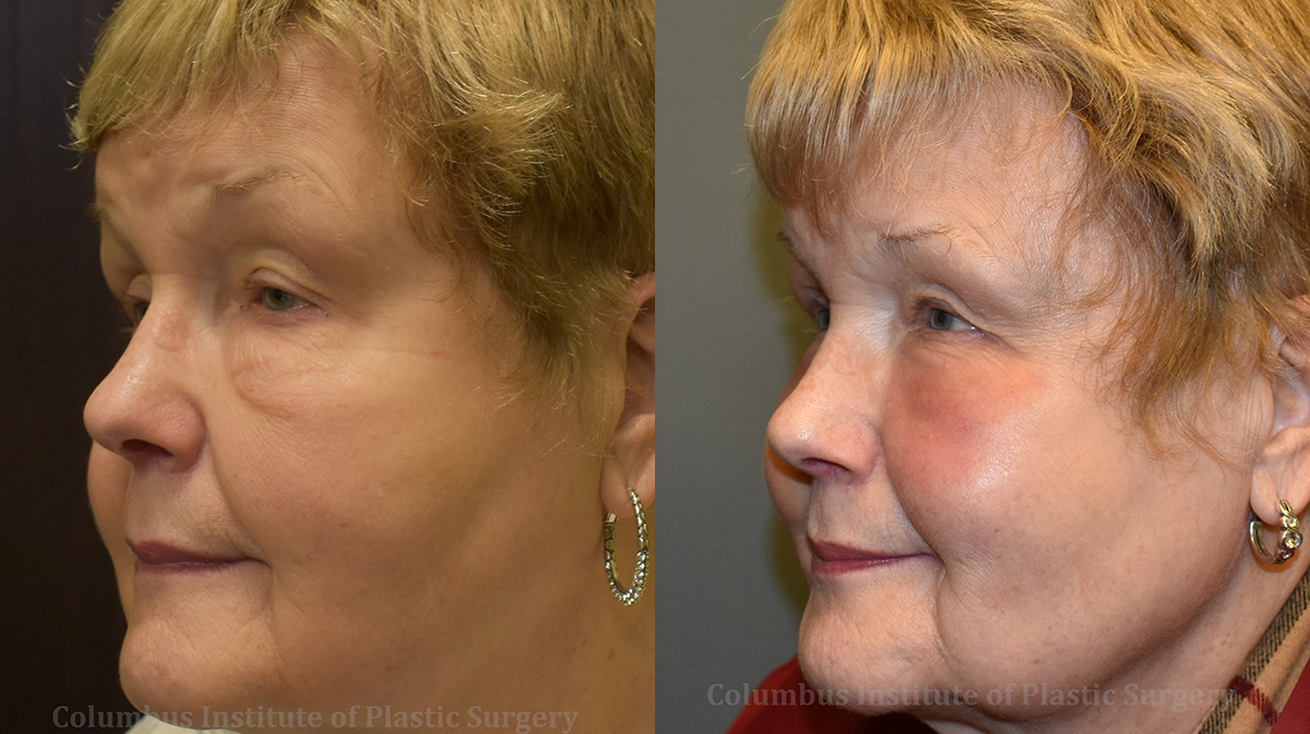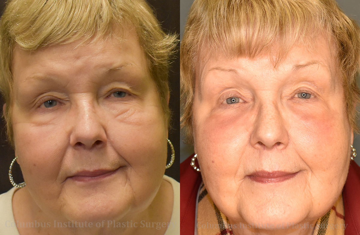 This is a 72-year-old woman from Plain City, OH who came to the Columbus Institute of Plastic Surgery for laser resurfacing under the eyes with our nurse practitioner. Particularly the MicroLaser Peel treatment. This laser tightens the skin and gives it a smooth appearance. Overall, it gives the patient a younger, refreshed look that lasts for years! Recovery is about 2 – 4 days!. She is shown here before and 3 weeks post.