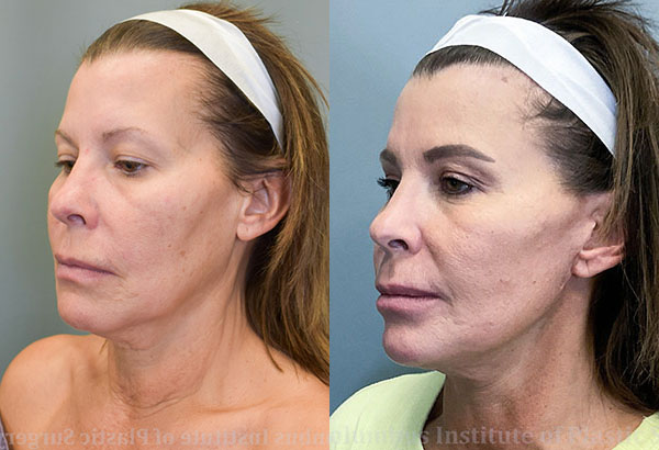 This beautiful 54-year-old woman is local to the Columbus Area. She came to Dr. Shah in want of a more youthful look. After a consultation period, and with the help of Dr. Shah’s expertise, she landed on a mini face lift. Dr. Shah performed the procedure under general anesthesia. The patient is photographed here before surgery and 7 months after.