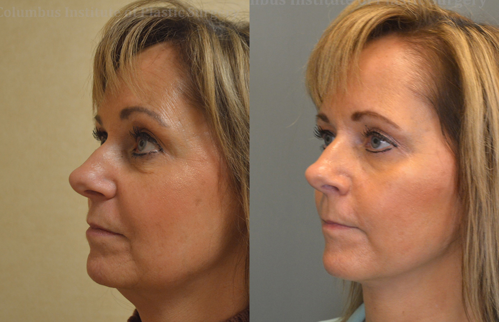 This is a lovely 51 year old woman from Ohio who didn’t like the minor sagging in her lower face, and jawline. She knew she had to trust her beautiful face to an experienced physician, and her research led her to best-in-his-field plastic surgeon Bivik Shah MD. He advised a mini facelift. She was confident in his advice, and scheduled the procedure. Dr. Shah performed the mini facelift under IV (twilight) sedation, and she had a quick recovery; about one week! AS you can see, her result is soft and natural. She is photographed here before her surgery, and only one month after.